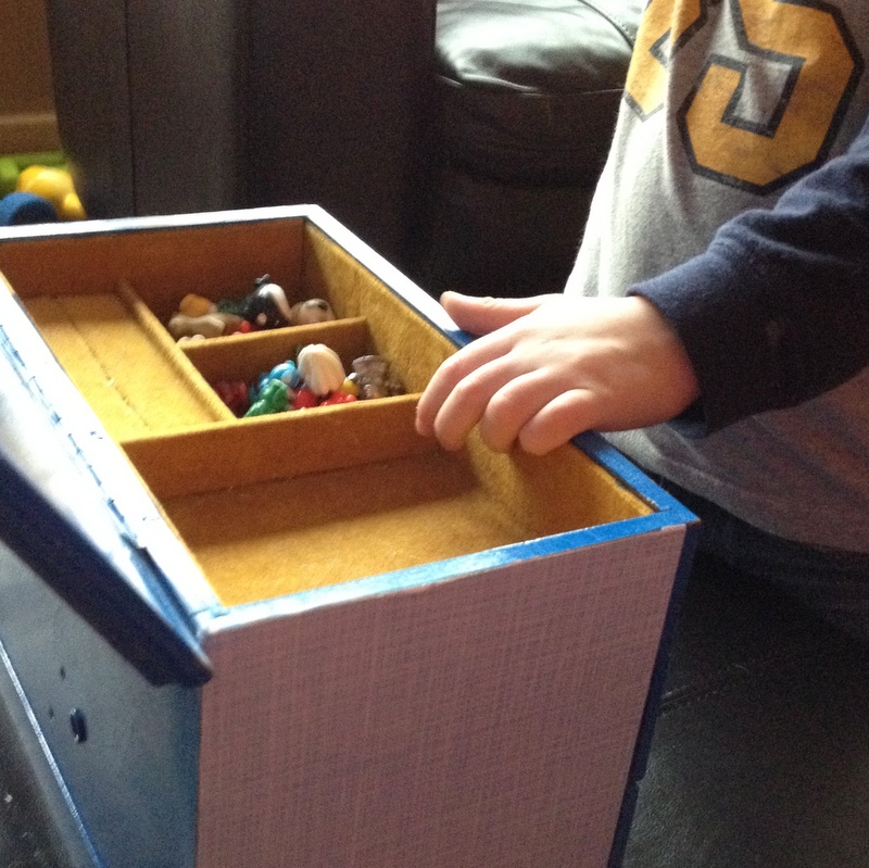 Yes, I said treasure box. In Nolan's words, "Mom, we can call mine a treasure box because I'm not a girl. I don't like fancy make up and rings. I'm a boy so mine can have boy stuff."
